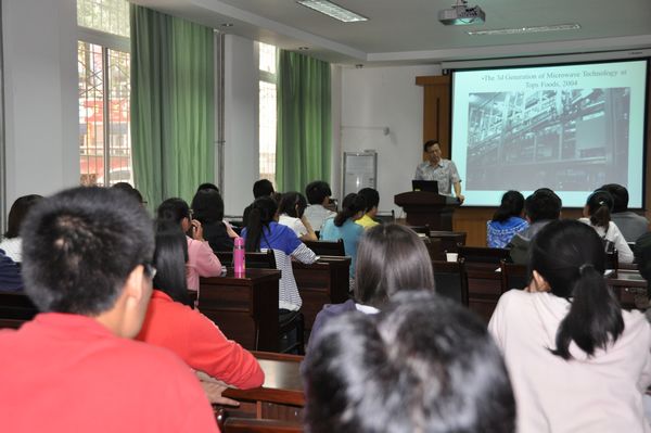 5月24日上午唐教授为我院师生作了关于华盛顿州立大学食品工程高新技术研究进展的学术报告,主要讲述了微波及射频加热原理,微波杀菌技术研究方法及研究进展,射频杀虫技术及其研究进展,并解答了教师和学生提出的问题。唐教授的报告深入浅出,内容精彩,受到大家的一致好评。