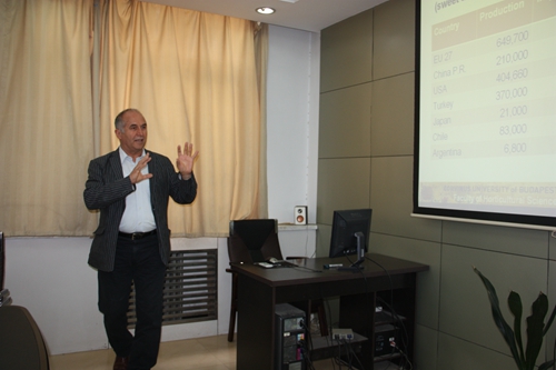 访问期间,Karoly教授为我院师生从世界樱桃产业的生产现状和发展趋势、有关樱桃砧木育种、樱桃果园栽培管理体系和修剪技术等方面作了题为:世界樱桃产业现状及发展趋势的学术报告。他指出:樱桃对光利用研究丶水分高效利用研究及植物保护等方面是我校今后研究方向的重点。樱桃企业负责人和我院师生表示通过报告会,增加了樱桃生产业发展的信心和明确了科研的方向。